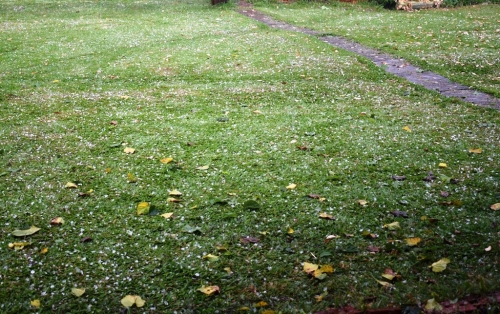 Por volta de 16 horas choveu forte, com um pouco de vento e queda de granizo pequeno, sem muita intensidade.