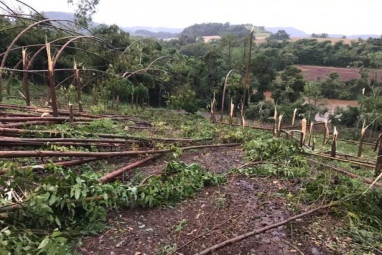 Conforme o proprietário, o vendaval tipo tornado deixou rastros de destruição naquele local. Ele chegou após o acontecido e ficou assustado com o que viu. Próximo ao local do fato não tem residências, onde está sendo planejado a construção de um acampamento.