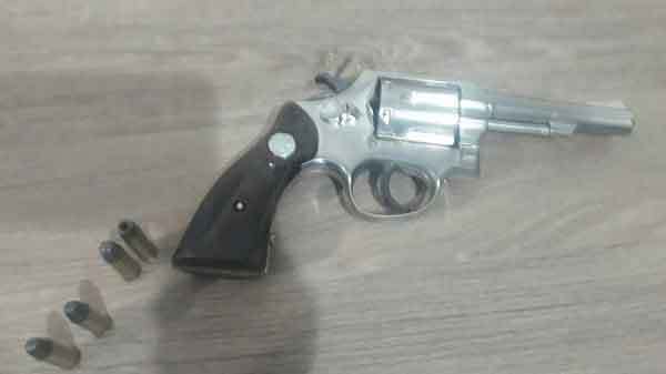 Os policiais fizeram buscas no local, com apoio de outras guarnições mas não localizaram o suspeito, porém foi localizada a arma de fogo tipo revólver marca Taurus Calibre .38, municiada, que foi apreendida e entregue na DP para as demais providências de Polícia Judiciária.