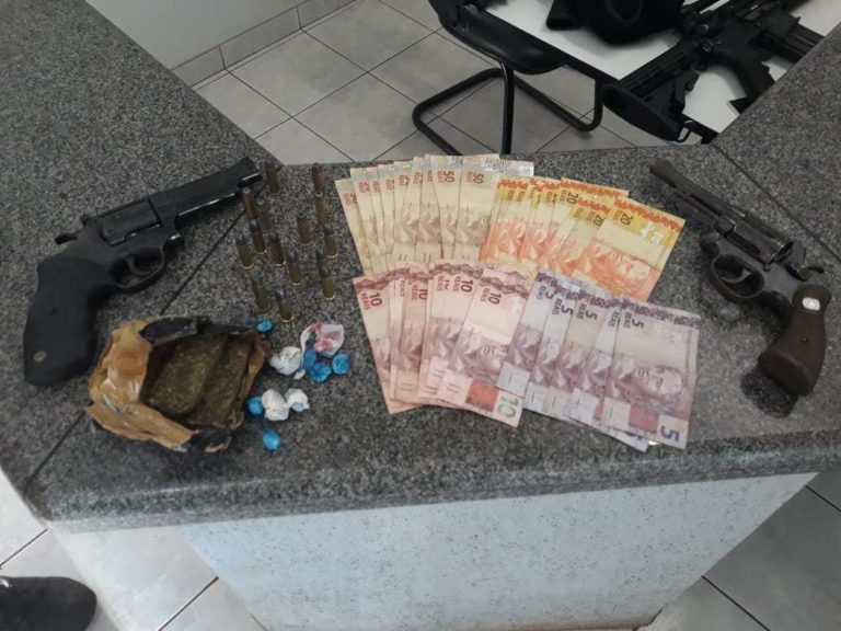 Com eles foi apreendido dois revólveres, cocaína, maconha e dinheiro, provavelmente resultado da traficância.
