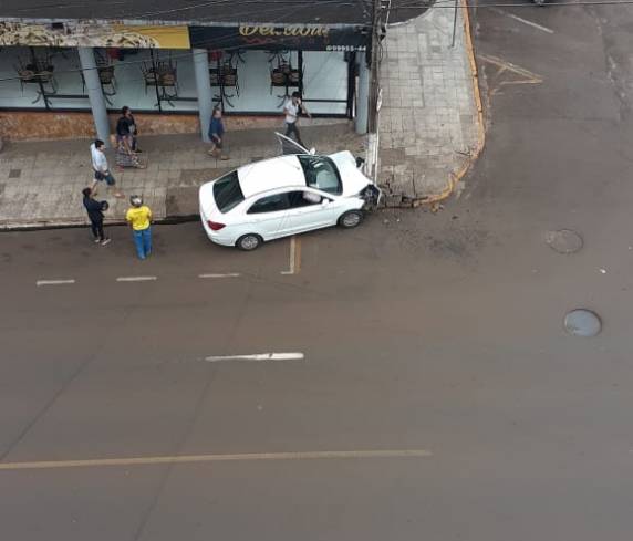 Motorista perde controle de veículo e colide contra poste no centro de Ijui