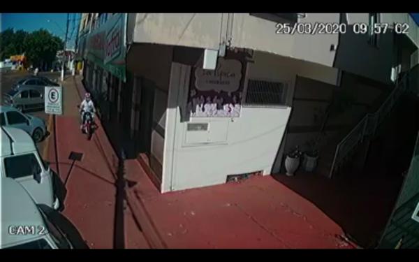 Um vídeo que circula pelas redes sociais mostra um absurdo cometido por um motociclista, em plena luz do dia e sobre uma calçada no centro da cidade de Tenente Portela.