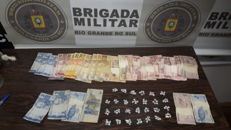 Com ambos foram localizadas 134 pedras de crack e R$ 470,00 em dinheiro, sendo conduzidos presos para Delegacia de Polícia e posterior ao Presídio Estadual de Três Passos.