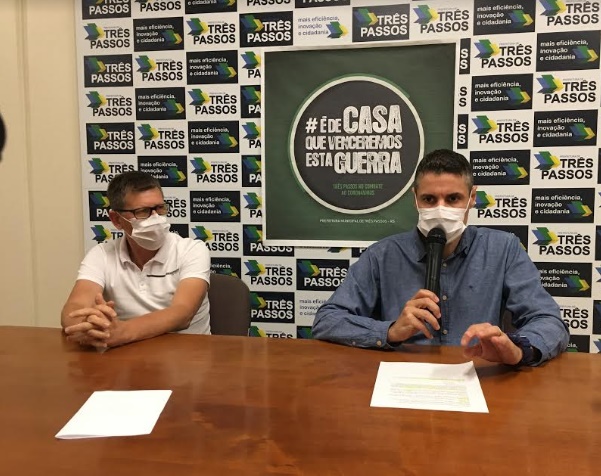 O prefeito Municipal de Três Passos, José Carlos Amaral, e o vice-prefeito, Jorge Leandro Dickel, anunciaram no final da tarde desta quarta-feira, dia 29 de abril, os primeiros três casos positivos de coronavírus no município.