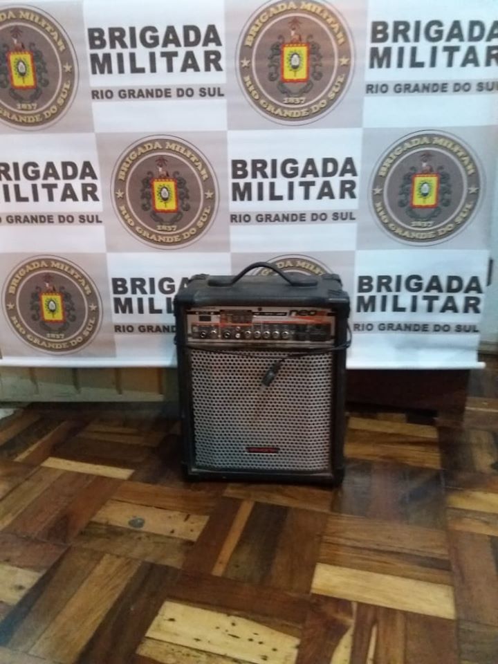 Em deslocamento ao local foi constatado o fato, a caixa de som foi apreendida e lavrado um Boletim de Ocorrência, pois a vitima manifestou desejo de representar com o acusado.