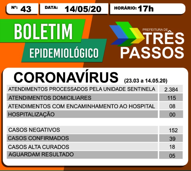 BOLETIM EPIDEMIOLÓGICO DIVULGADO PELA PREFEITURA DE TRÊS PASSOS: