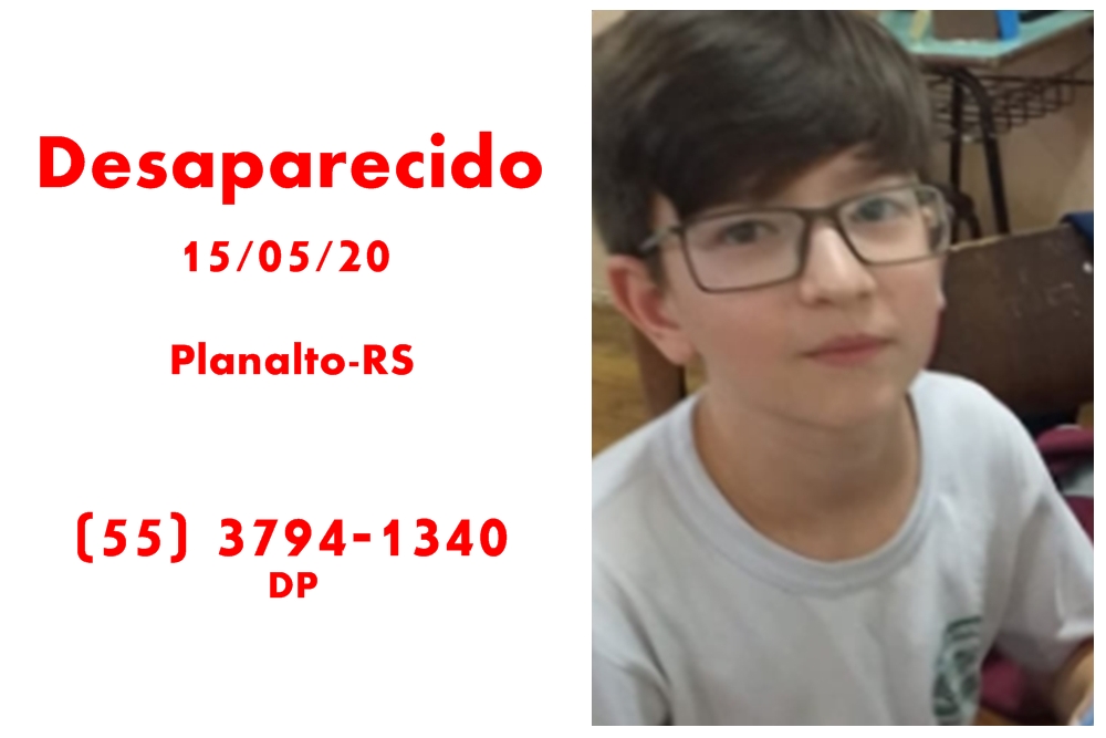 O desaparecimento do menino Rafael Mateus Winques continua um mistério para a Polícia Civil de Planalto no Norte do Rio Grande do Sul. O menino sumiu na última sexta-feira (15). A principal suspeita é de que ele tenha saído de casa durante a noite.