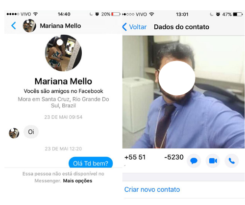 Não demorou muito, a “mulher” insistentemente pedia para enviar fotos íntimas, porém sem sucesso. No último sábado, eis que a mulher (ou o indivíduo), nos bloqueou no WhatsApp e no Facebook. Nada de anormal, contudo na manhã desta segunda, 08 de junho, fomos surpreendidos com várias ligações de um número desconhecido, sendo da área 51. Depois de algumas tentativas, resolvemos atender.