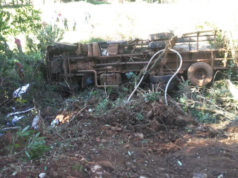 Uma vítima do sexo masculino foi ejetada do caminhão tendo politraumatismo, indo a óbito.