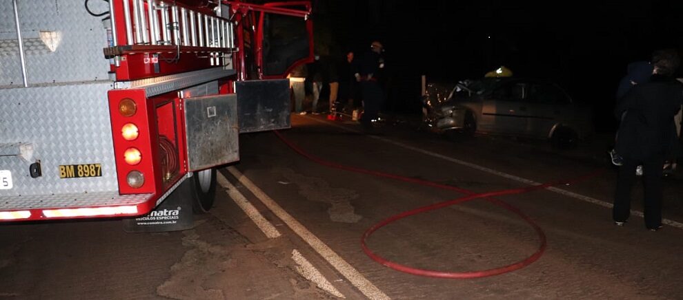 A colisão frontal envolveu um GM Corsa, placa de Três de Maio, que trafegava no sentido Horizontina/Três de Maio e um caminhão Volvo com placas de Passo Fundo que vinha no sentido contrário.