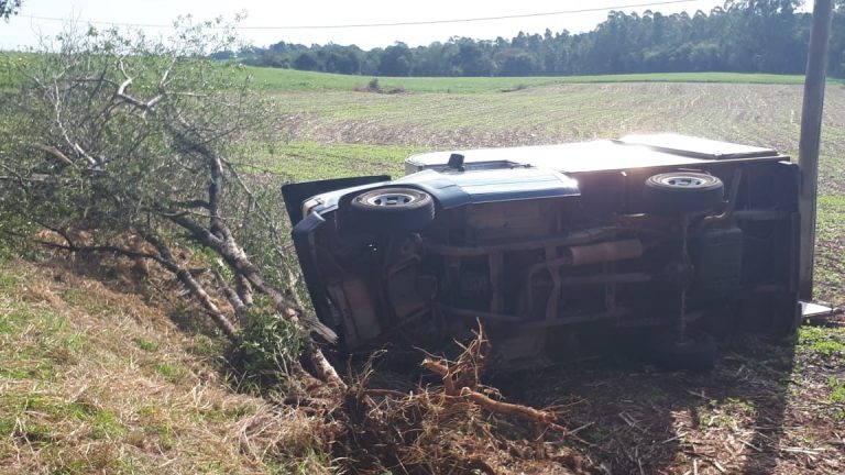 Uma caminhonete GM D-20, placas de Francisco Beltrão – PR, seguia com destino a Três Passos quando problemas mecânicos causaram a saída da pista, vindo o veículo a tombar após colidir em uma árvore às margens da rodovia.