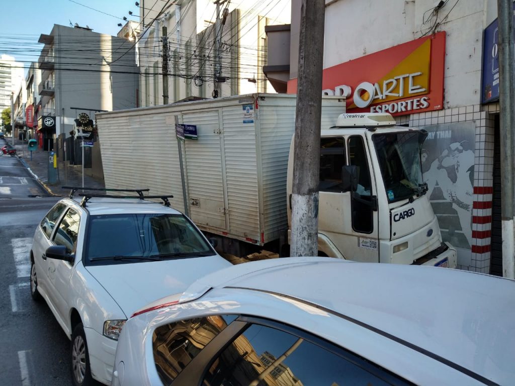 Caminhão sofre pane mecânica e bate em fachada de loja no centro de Passo Fundo