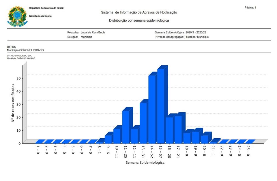 Com dados do Sistema de Informação de Agravos de Notificação do Ministério da Saúde, apresentamos indicadores divididos em semanas epidemiológicas, onde a semana 1 corresponde ao período entre 29/12/2019 a 04/01/2020. Assim, a primeira notificação da doença ocorreu na semana 8, ou seja, entre os dias 16/02/2020 a 22/02/2020.