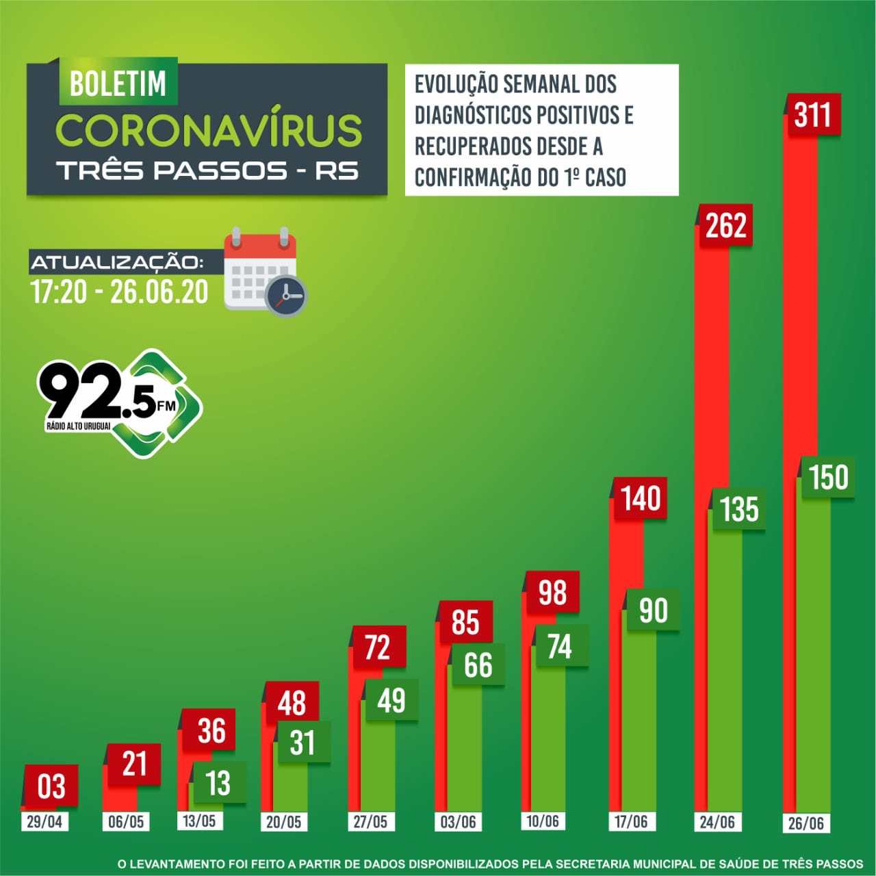 Porém, o sinal de alerta segue ligado, já que a expectativa é que Três Passos ultrapasse os 400 casos de Covid-19 até o próximo final de semana.