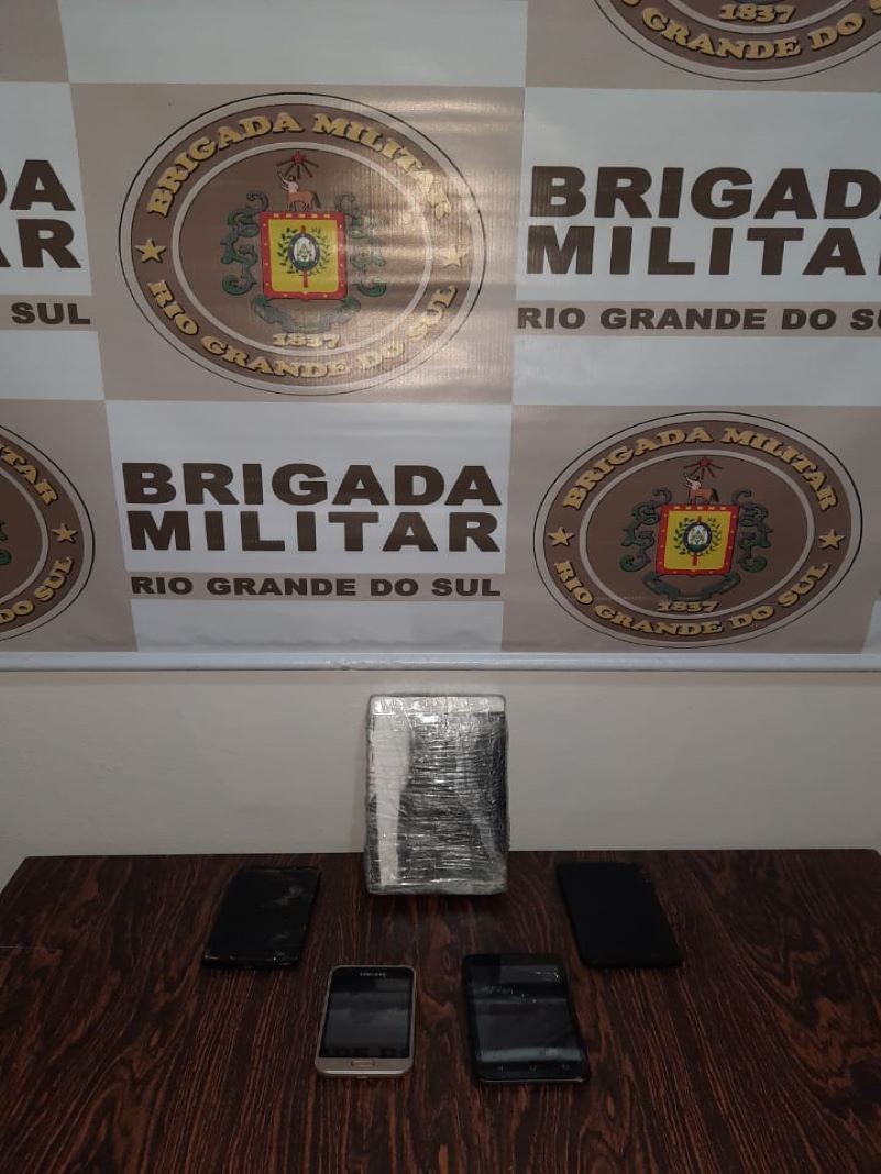 Com eles foi localizado e apreendido um tijolo de cocaína, pesando aproximadamente 1 quilo. Todos foram encaminhados para a Delegacia de Polícia para registro do flagrante.