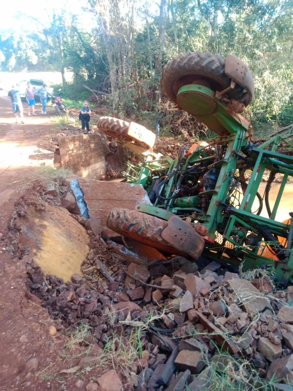 O acidente ocorreu na tarde deste domingo (02), no momento que o Trator Autopropelido Imperador da marca Stara, passava sobre a ponte.