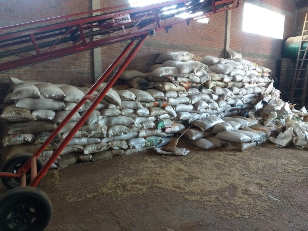 Na propriedade do autor em um galpão havia mais sacas de soja.