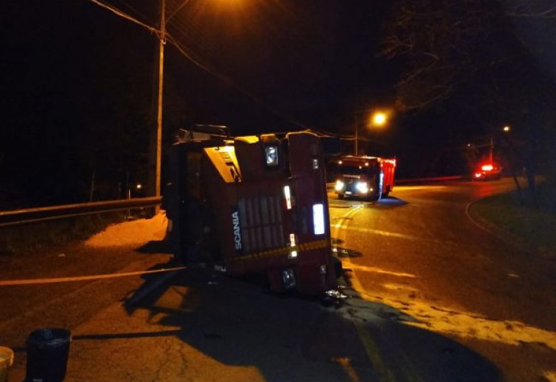 Por volta das 22h30 de domingo (23), a guarnição do Corpo de Bombeiros de Itapiranga foi acionada para atender acidente de trânsito, capotamento de caminhão na SC 163, próximo a entrada da cidade.