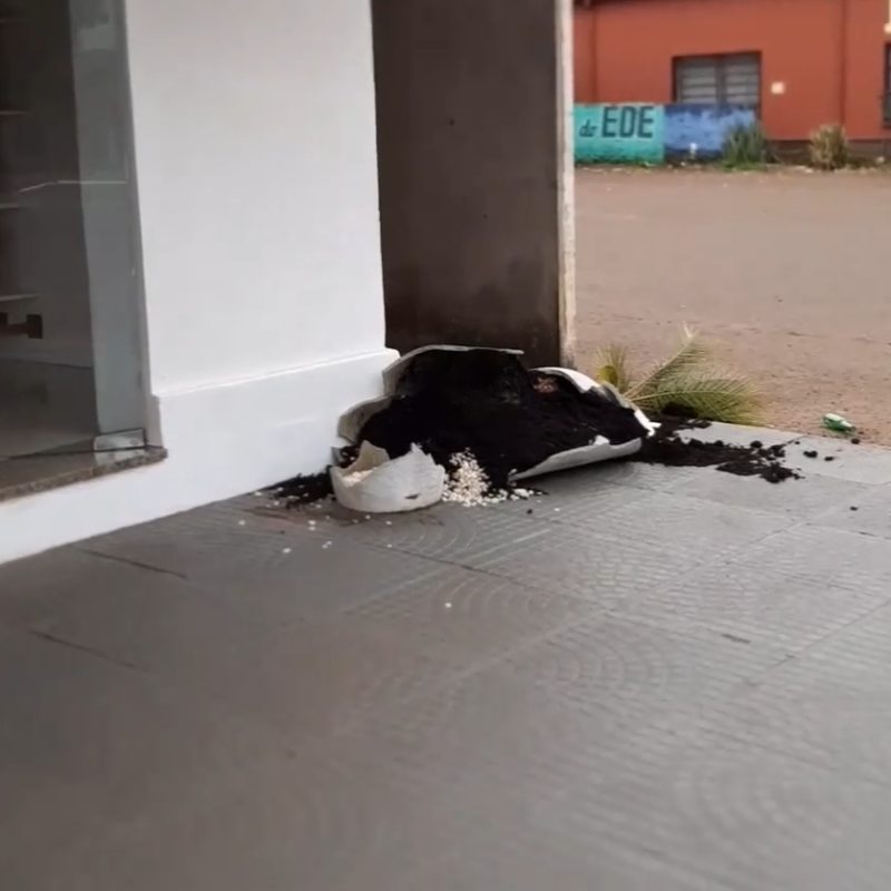 Conforme consta nas imagens abaixo, um homem passava em frente a Loja Ana Dreams e por motivos desconhecidos quebrou um vaso de flor de frente ao estabelecimento e seguiu caminho.