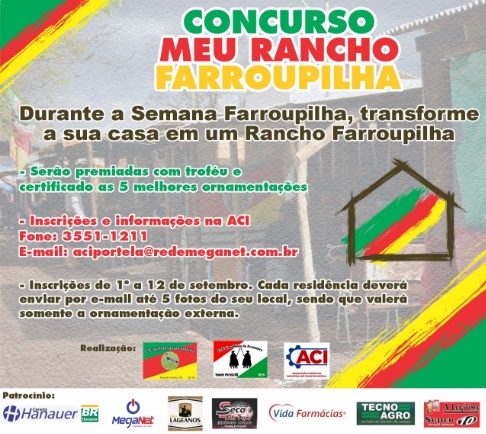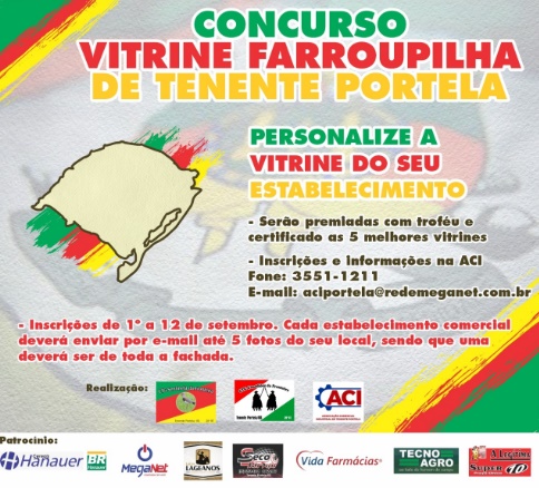 Mas a data histórica do 20 de Setembro e a própria Semana Farroupilha não deixará de existir neste período, porém, a forma de celebrar isso terá que ser diferente. Para isso, as entidades tradicionalistas de Tenente Portela, ou seja, os CTGs Sentinela da Fronteira e Guardiões da Fronteira, juntamente com a Associação Comercial e Industrial – ACI, lançam os concursos “Vitrine Farroupilha” e “Meu Rancho Farroupilha”, que tem como propósito estimular que estabelecimentos comerciais e residências inseridos em todo o território do município se caracterizem com as cores da bandeira do Rio Grande do Sul e também com as características da cultura e do folclore gaúcho.
