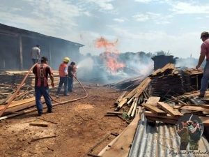 Ao chegar no local o princípio de incêndio era de grandes proporções, uma pilha de madeira localizada ao lado dos galpões da madeireira Sabadin.