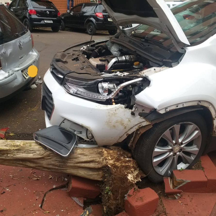 Motorista perde controle de carro no centro de Ijuí, derruba árvore e colide em outro veículo