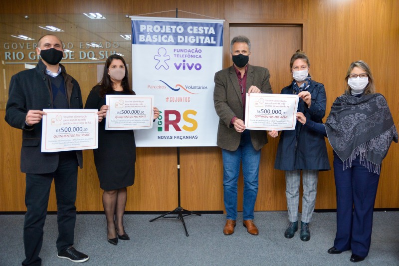 O governo gaúcho mobilizou as secretarias de Planejamento, Governança e Gestão (SPGG), da Educação (Seduc) e de Trabalho e Assistência Social (Stas) para colaborar com o projeto. “Ações como essa representam a razão de ser do serviço público. Nosso time se envolveu para organizar as doações, mas o grande mérito é das entidades parceiras”, afirmou a titular adjunta da SPGG, Izabel Matte, no ato realizado nesta quinta-feira (3/9) para formalização do projeto. Também estiveram presentes os titulares da Seduc, Faisal Karam, e da Stas, Regina Becker, a gerente de Relações Institucionais da Fundação Telefônica Vivo, Laiana Elisa de Souza, e o presidente da ONG Parceiros Voluntários, Daniel Santoro.