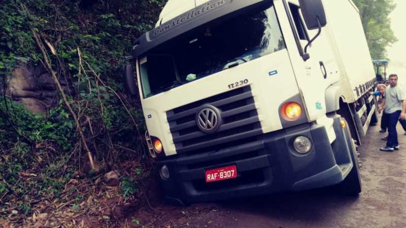 O Caminhão tombou no sentido São Martinho/Boa Vista do Buricá e foi retirado do local pelas máquinas da Prefeitura. A Brigada Militar atendeu a ocorrência. O motorista do caminhão não teria sofrido ferimentos.
