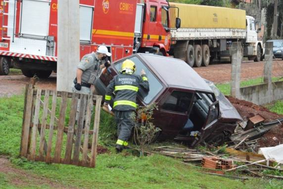 O condutor de um veículo Fia Uno, com placas de Catuípe, trafegava pela Rua Benjamin Barriquelo, no bairro Modelo, quando por volta das 9h, saiu da pista, invadiu o pátio de uma residência e arrancou um poste de energia elétrica. Devido ao impacto da colisão, o carro começou a pegar fogo na parte frontal.