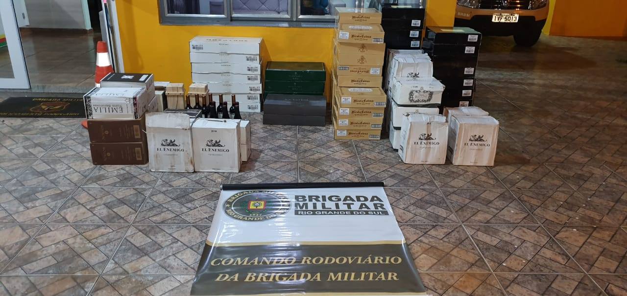 Na data de ontem, por volta das 23h15min, na ERS 344 Km 37, o Pelotão Rodoviário de Santa Rosa realizou a abordagem do veículo Fiat Palio Weekend com placas de Canoas, conduzido por um jovem de 24 anos. A guarnição de serviço ao realizar a revista interna no veículo, localizou 384 garrafas de vinho sem notas e sem procedência, além 48 garrafas e 24 latões de cerveja, caracterizando o crime de descaminho. Durante revista minuciosa, também foi localizada uma pequena quantidade de cocaína.