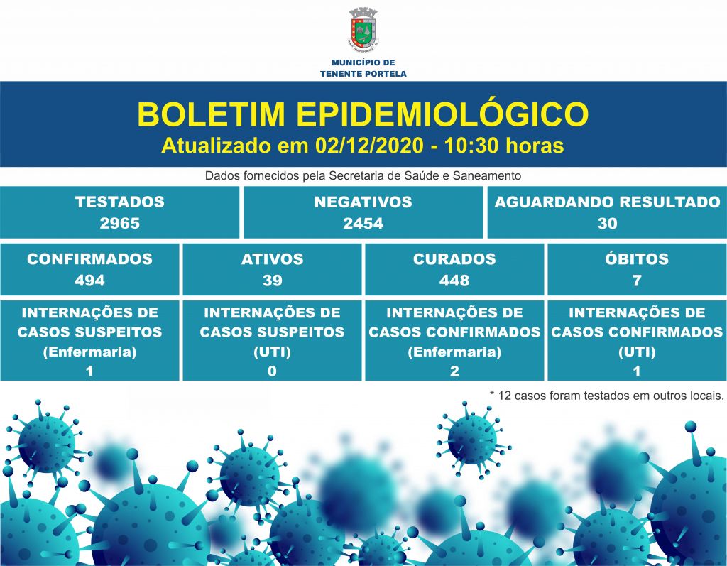 Boletim epidemiológico de Tenente Portela - Dia 02/12/20