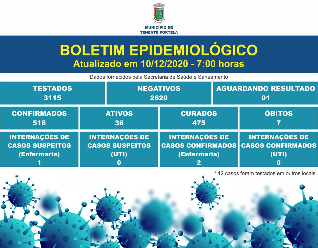 Boletim epidemiológico de Tenente Portela - Dia 10/12/20
