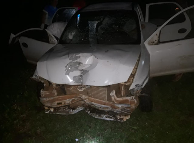 No local a guarnição encontrou um veículo GM Celta placas de Itapiranga, tendo com ocupantes duas mulheres. O Celta foi encontrado a cerca 50 metros da pista em meio a um potreiro. Foi atendida uma mulher a qual apresentava fratura aberta membro superior direito com um pedaço de madeira transfixado ao braço e sem maiores ferimentos. A outra ocupante do veículo apresentava somente um ferimento cortante região superior face, provocado pelo impacto contra o para-brisa.