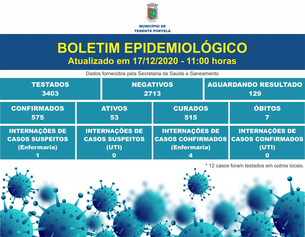 Boletim epidemiológico de Tenente Portela - Dia 17/12/20