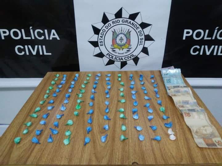 Na residência os policiais apreenderam 112 buchas de cocaína (76 gramas) e R$ 505,00 (quinhentos e cinco reais).