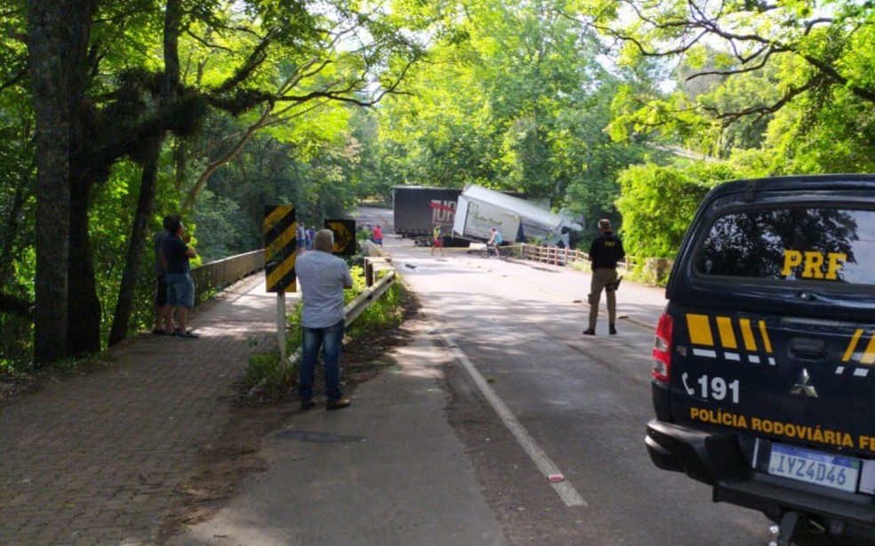 Segundo a PRF, o acidente aconteceu por volta das 19h50, no km 223 da rodovia, sobre a ponte do Arroio Feitoria. Os dois veículos teriam colidido frontalmente. Ambos ficaram parcialmente sobre a ponte, com risco de caírem.