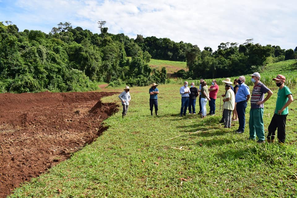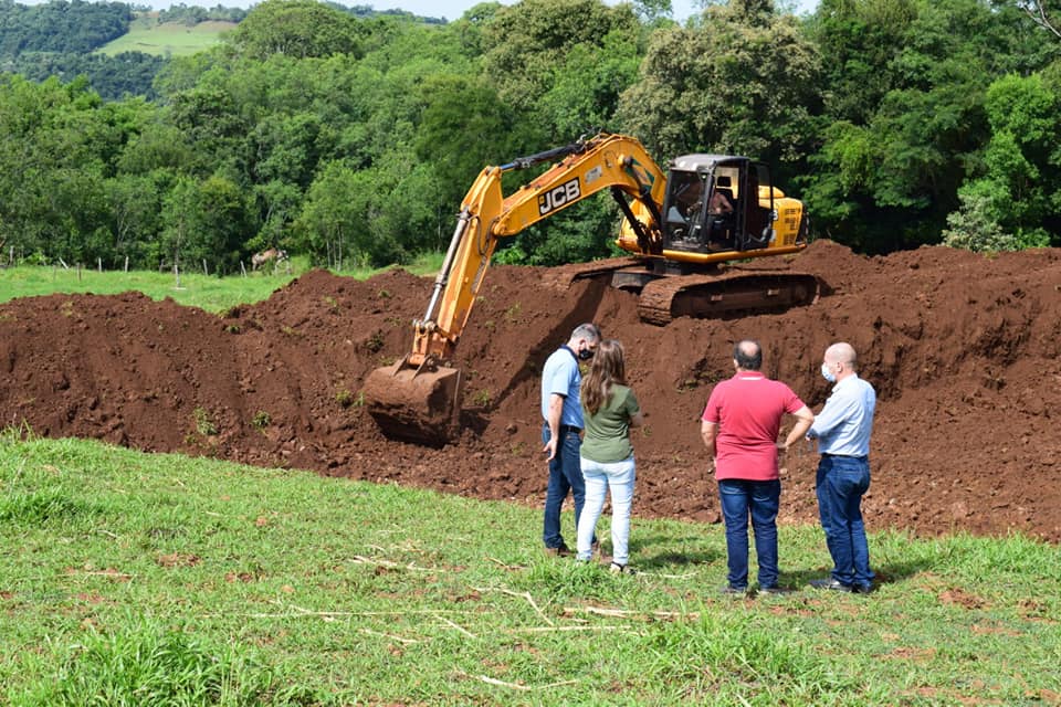 O prefeito Rosemar Sala e o secretário adjunto de Desenvolvimento Rural, João Benício Arruda Flores, estiveram na manhã desta quarta-feira, 10, visitando a propriedade do agricultor Vanderlei Wisniewski, em Alto Alegre. No local está sendo construído um açude através do Programa de Apoio a Ampliação da Infraestrutura Rural. A iniciativa é desenvolvida pela Emater/RS – Ascar e conta com o apoio da Prefeitura Municipal, formalizado através de convênio firmado com a Secretaria de Estado da Agricultura, Pecuária e Desenvolvimento Rural.