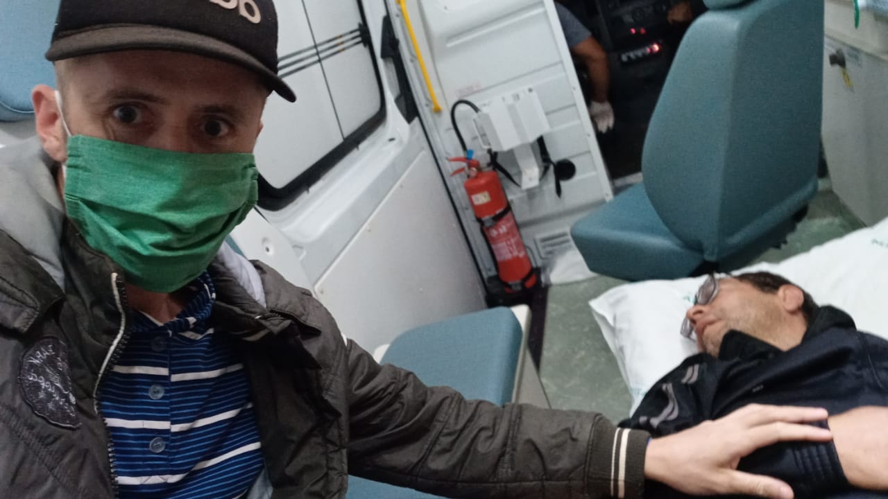 Ele estava desacordado e foi conduzido por uma ambulância ao Hospital Santo Antônio de Pádua onde foi atendido.