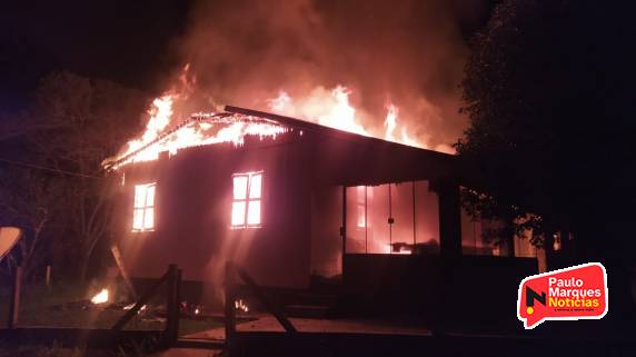 Uma residência foi completamente consumida por incêndio que aconteceu no início da madrugada desta terça-feira (26), no interior do município de São José do Inhacorá.