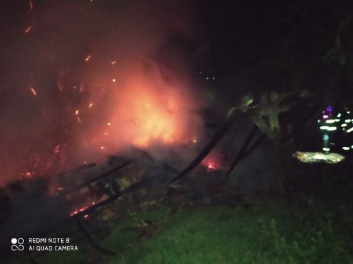 O fogo destruiu 40 metros quadrados de um galpão agrícola na Linha Sede Capela, interior de Itapiranga. Outros 100 metros quadrados da edificação puderam ser salvos.
