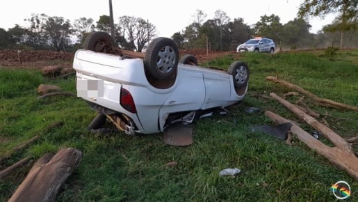 Veículo capota em saída de pista no interior de Itapiranga