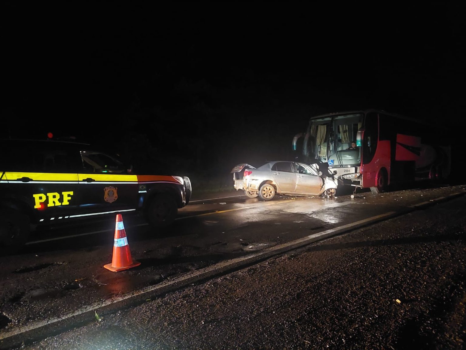 De acordo com os levantamentos realizados pela PRF, o Corolla seguia no sentido Mato Castelhano – Passo Fundo quando colidiu com o ônibus que seguia no sentido oposto.