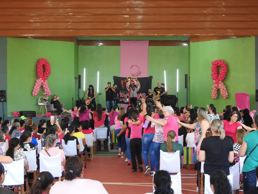 Mais de 600 mulheres compareceram ao ginásio da Praça Presidente João Goulart, na tarde da segunda-feira (24 de outubro), para assistir a palestra show denominada: ‘arte para viver, música para não enlouquecer’. A atividade faz parte da campanha Outubro Rosa, organizada conjuntamente por várias secretarias municipais.