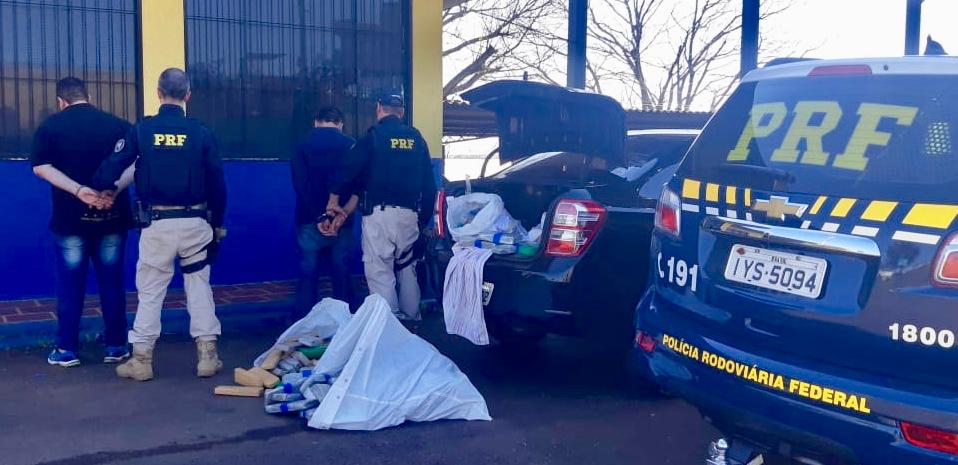 Policiais Rodoviários Federais prenderam o condutor e o passageiro de um automóvel que transportava 125,5 quilos de maconha na tarde desta quarta-feira (28), na BR 386 em Seberi.