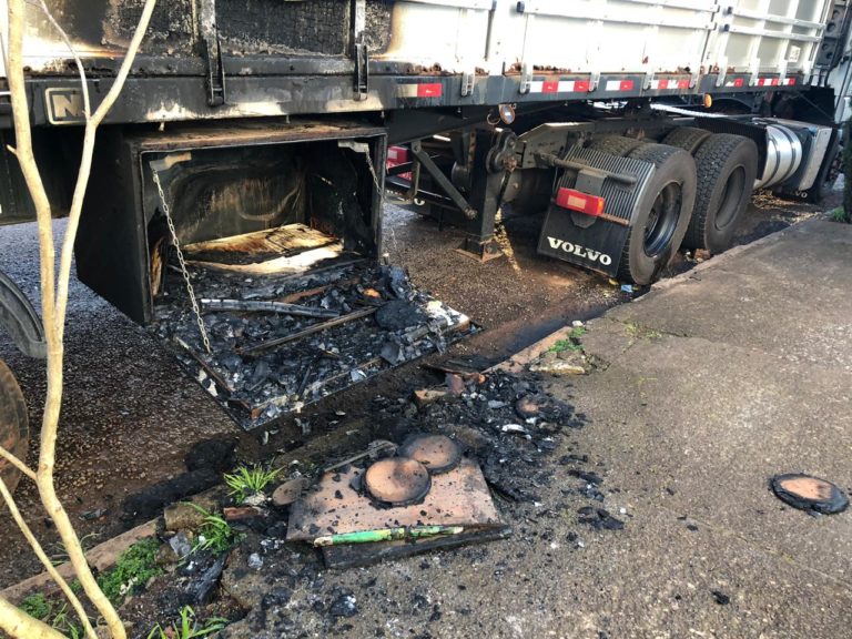 Vândalos colocam fogo em caminhão durante a madrugada, no Noroeste do RS