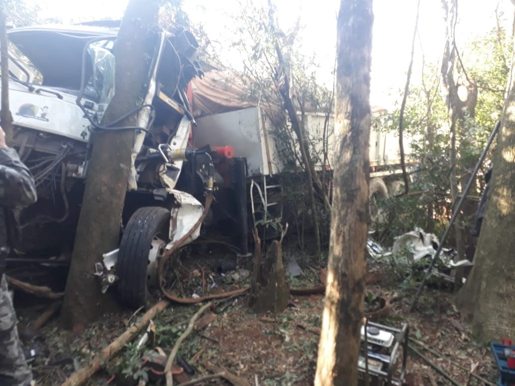 Um caminhão carregado de materiais de construção, placas de Passo Fundo, fazia uma descida quando ficou sem freios, vindo a colidir em uma árvore. O condutor, de 39 anos, ficou preso às ferragens e precisou ser resgatado pelo Corpo de Bombeiros.