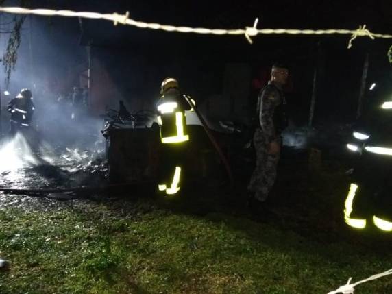 Quando os bombeiros chegaram ao local, a casa de madeira já estava destruída pelo fogo e o trabalho inicial da guarnição se concentrou em conter as chamas que se propagavam para o imóvel ao lado.