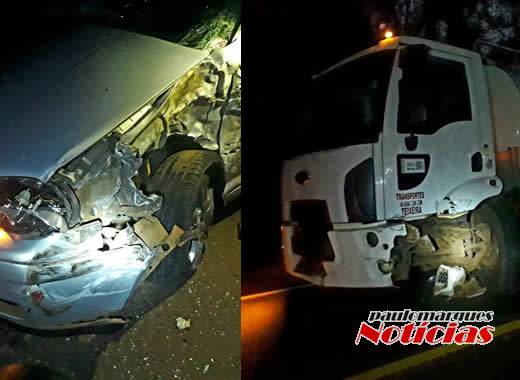 Um acidente de trânsito no final da madrugada deste domingo (15), envolveu um caminhão Ford com tanque transportador de leite, e um automóvel VW Golfe. Nos dois veículos estavam apenas o motorista, que não ficaram feridos. Os erbegues do carro foram acionados.