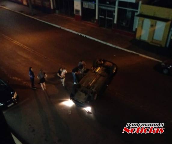 Um automóvel Ford Focus, com placas de Três de Maio, capotou no Centro da cidade no final da noite deste domingo (15). Ninguém ficou ferido.