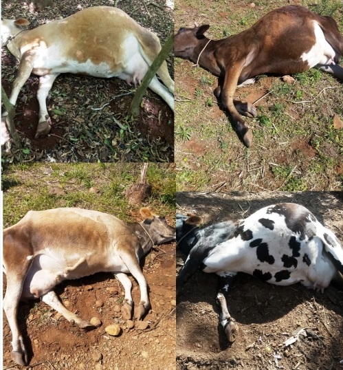 Existe a suspeita que os animais tenham comido ureia acidentalmente. Uma quinta vaca também está intoxicada, sendo que os pecuaristas estão tratando a mesma para que não tenha o mesmo final dos outros animais.
